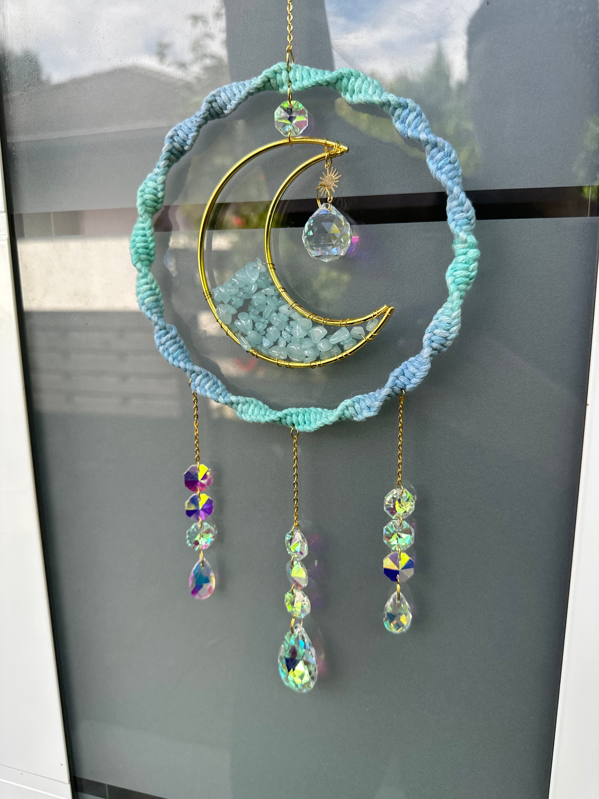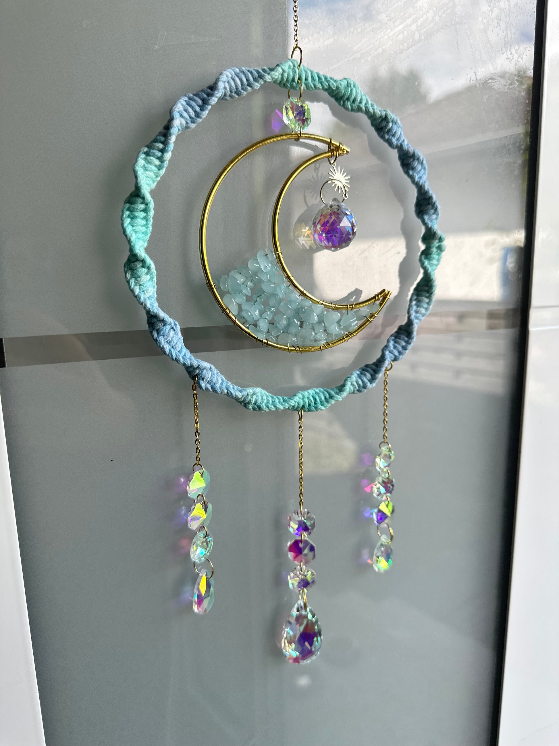 Sofortkauf Ring Mond Farbverlauf Blau Steine GOLD Sonnenfänger | Sonnencatcher Makramee