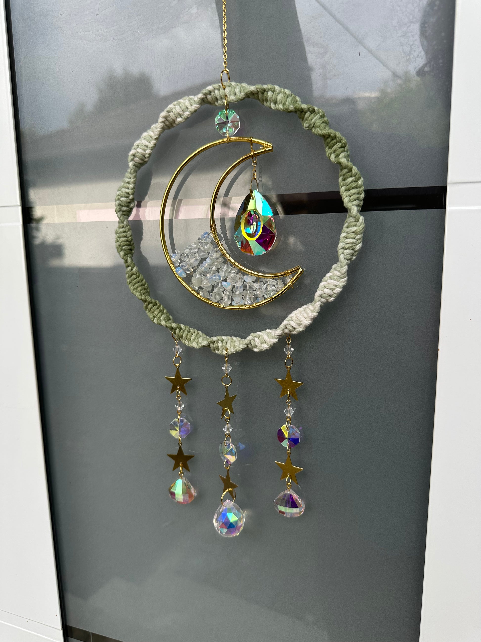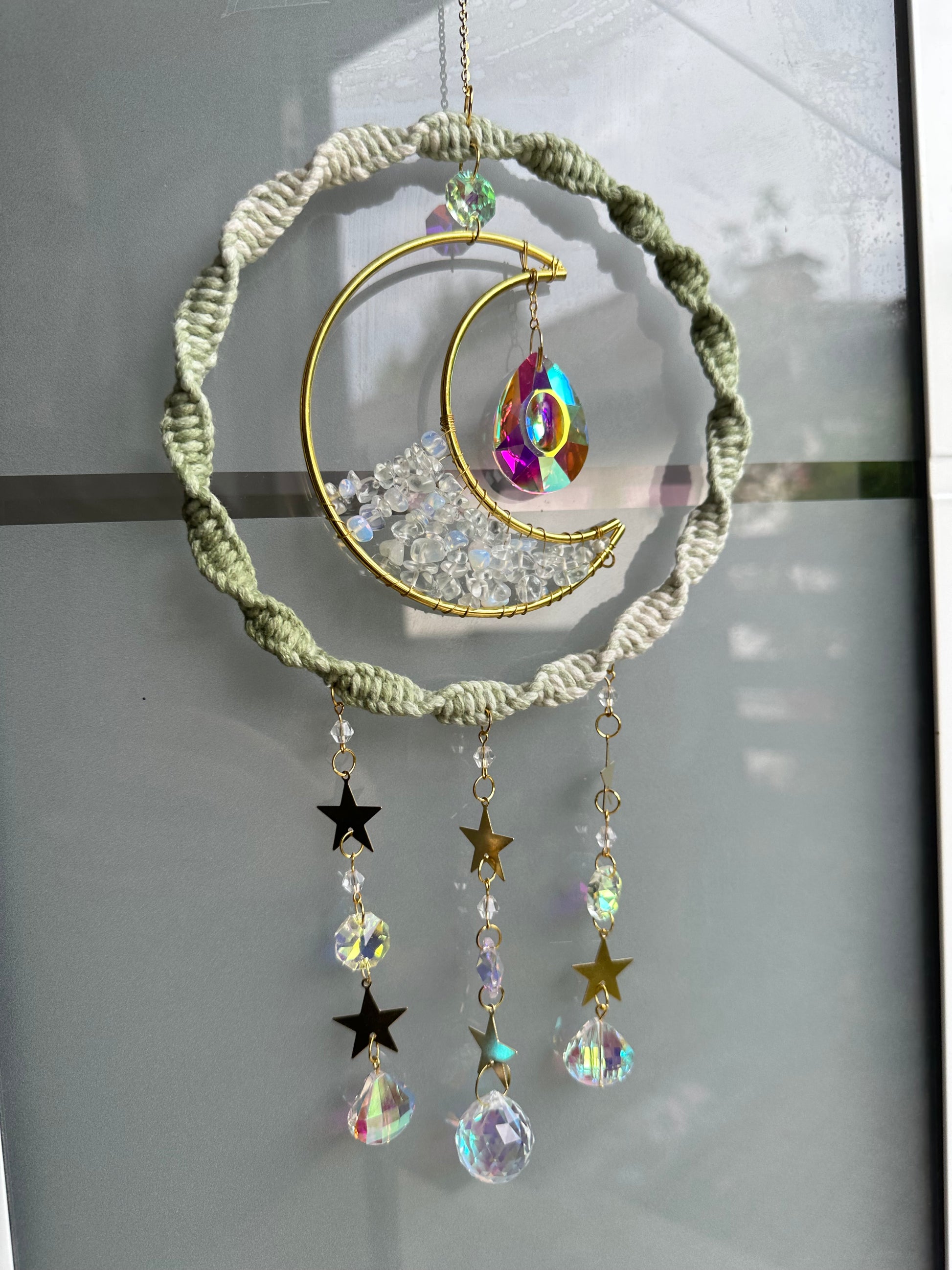 Sofortkauf Ring Mond Farbverlauf Grün Steine GOLD Sonnenfänger | Sonnencatcher Makramee