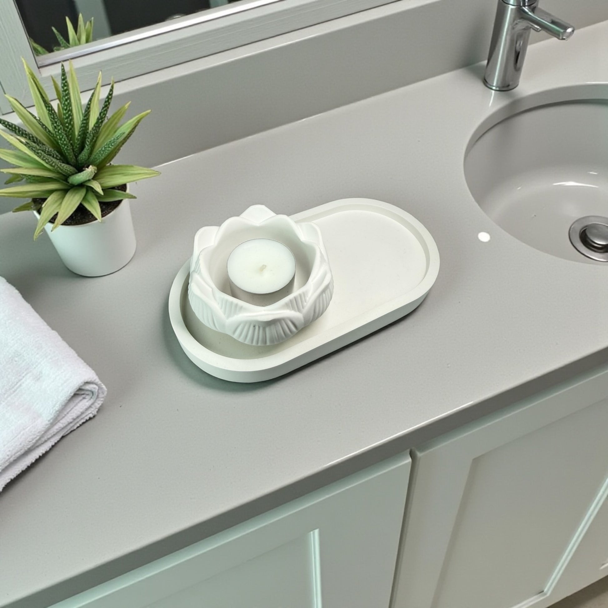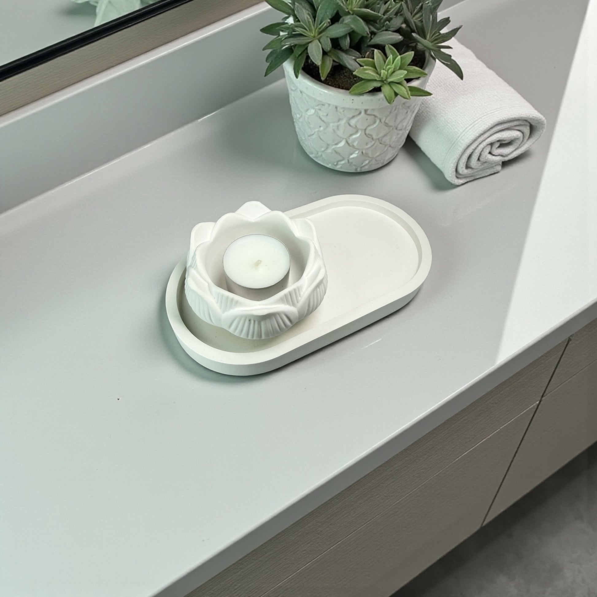 Tablett mit LOTUSBLUME Teelichthalter - Set & Einzeln